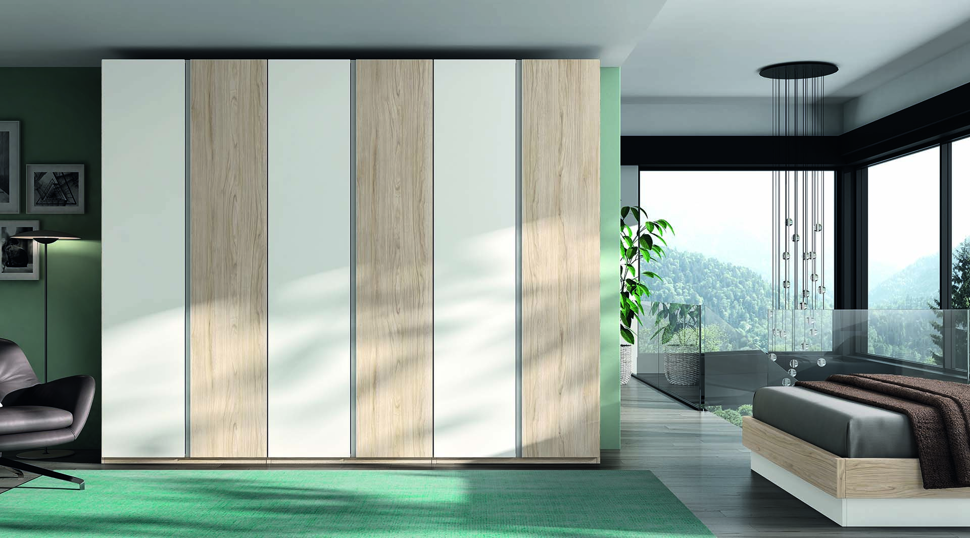 Armario con 6 Puertas combinadas, tirador de perfil. Varios colores para elegir, estantes interiores de 30 mm y bisagras con amortiguación de cierre. Con 3 Puertas Lacadas