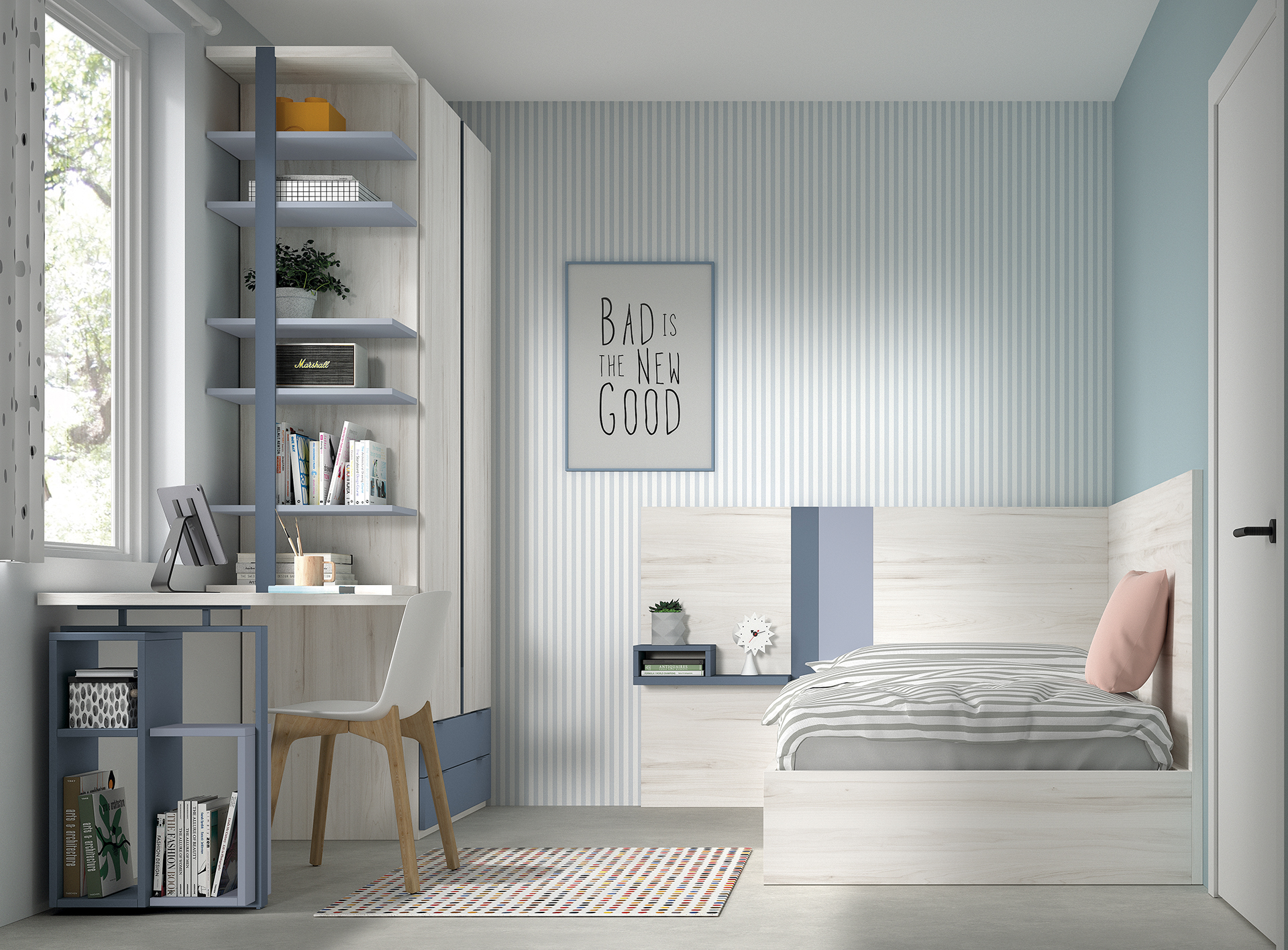 Habitacion Juvenil Cama Individual, Adaptable en Medidas y Colores