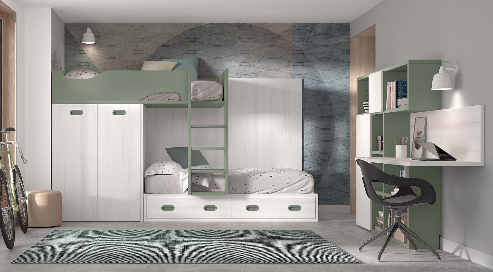 Litera Tren con Bajo Armario y compàcto 4 contenedores. Modulación y colores a elegir